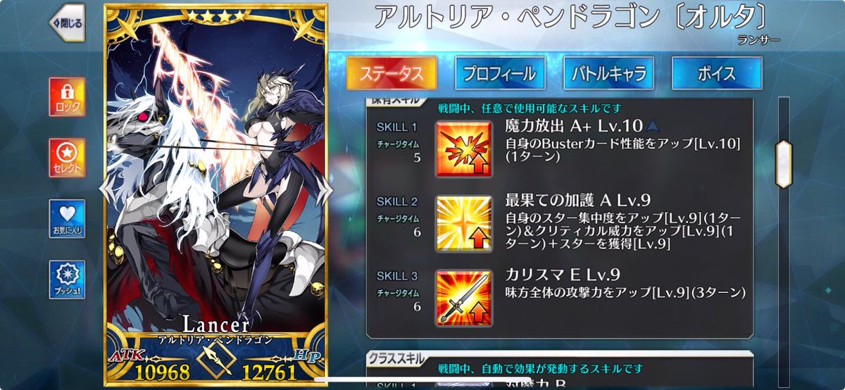 セイバーオルタと同様にNPチャージを獲得しました!