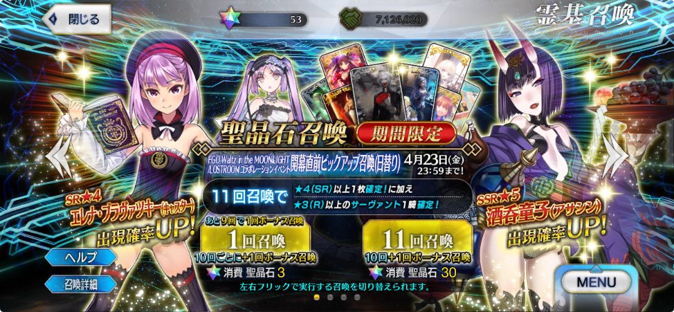 未だ霊衣がないマシュ衣装があった鯖路線は継続中なので、残りはイシュタルと牛若丸が最有力候補だと思います!