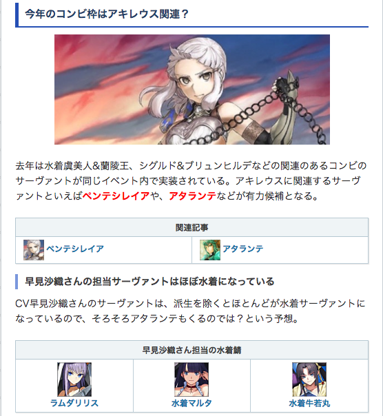 また、早見沙織さん担当のサーヴァントはアタランテ以外水着になっているので、そろそろくる気がします。