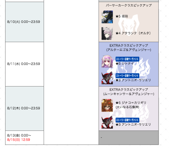 一応昔の水着サーヴァントをゲットするチャンスでもあるので、どれを引くか迷う際はぜひご覧ください!