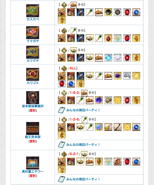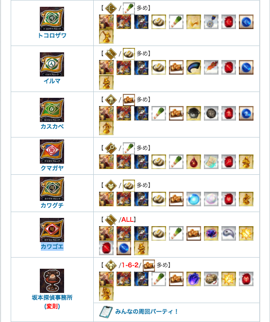 心臓が欲しい方は変則が良いですが、超巨大が出ないのが気になる方はカワグチかALLのカワゴエが良さよう。(各素材の最高効率は画像参照)