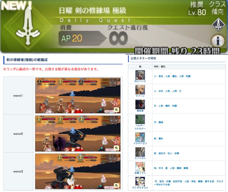 剣の修練場極級の敵編成とドロップはこんな感じ!