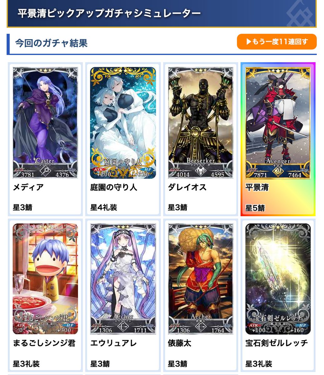 平景清PUガチャシミュ