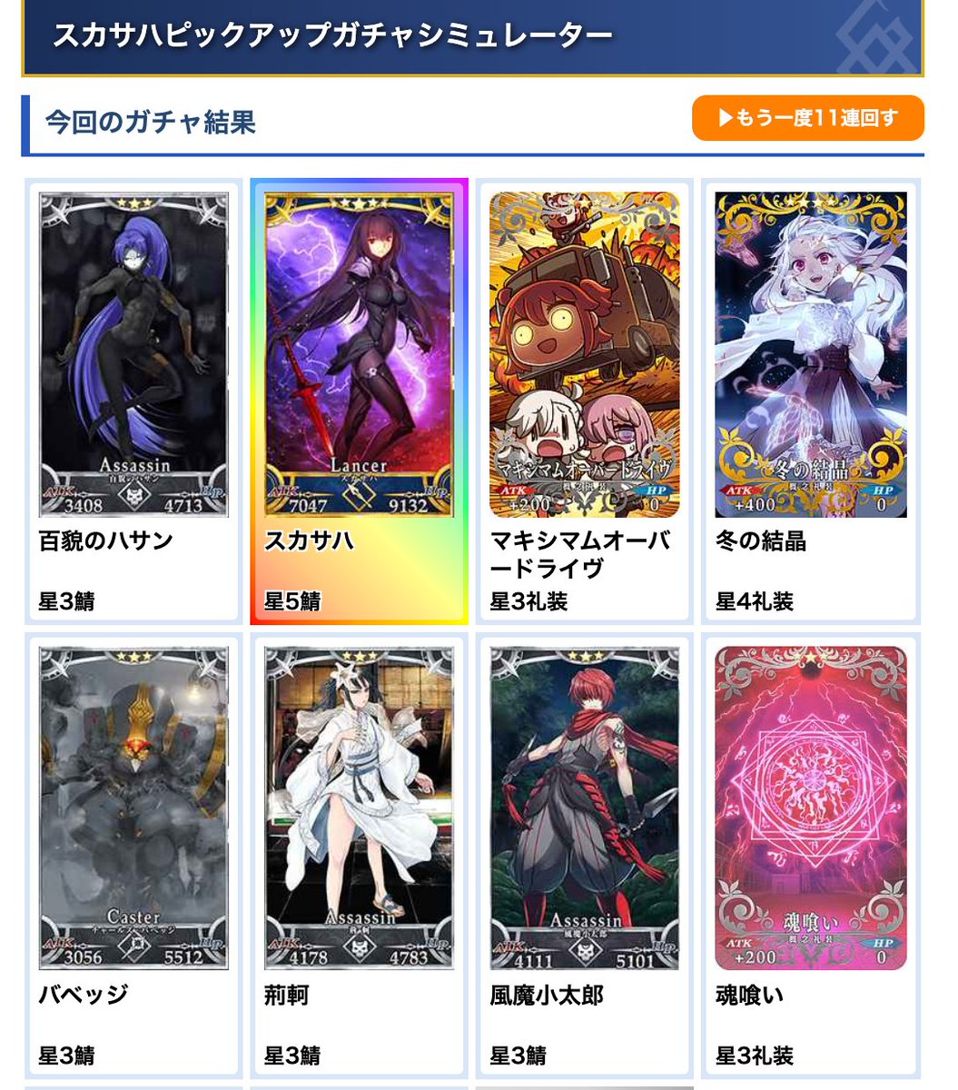 スカサハPUガチャシミュレーター