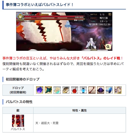 事件簿といえばバルバトスレイドですが、ドロップ素材に関しては変更や追加があるかも。