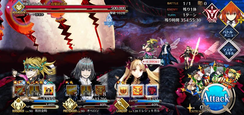 1Tで終わるレイドでこれは美味しいので、素材、絆、QP、魔術礼装EXPなどどれかがほしいなら頑張りましょう!