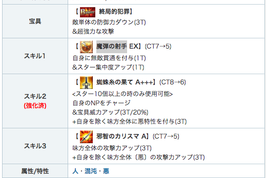 モリアーティのスキル強化詳細です。