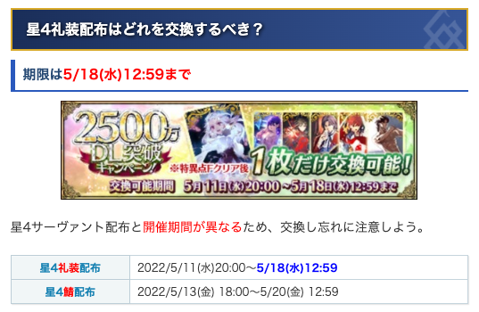 星4礼装交換は星4サーヴァント交換よりも早く終わるので注意してください!