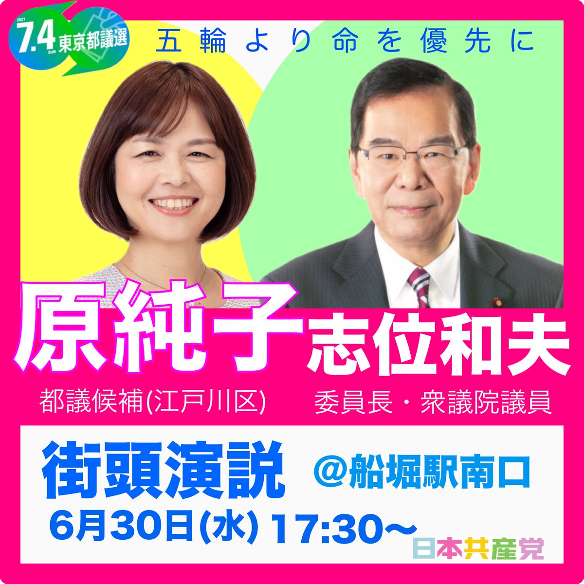 いよいよラストスパート。かならず議席奪取へ。頑張ります。 twitter.com/HaraJunEdogawa…