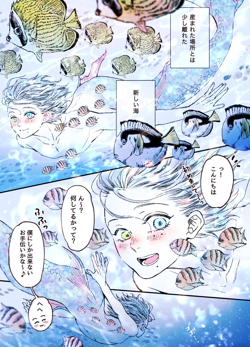 ※大大だーーい捏造!!じろさぶ じろ海賊🏴☠️ & さぶ人魚🧜♂️④ (1/2) 何も考えずに海を感じてもらえれば°・🐠🥺