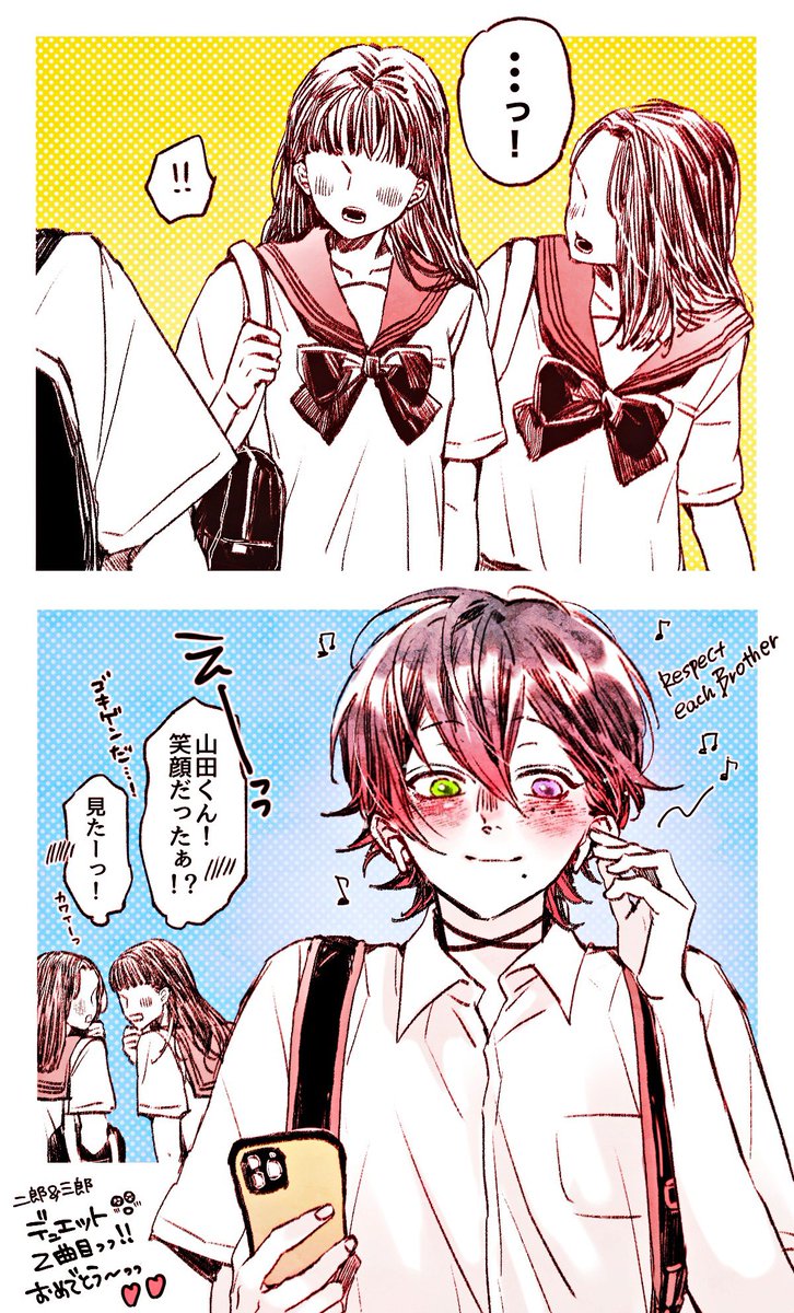 ヒプ生の山田三兄弟のブラックコーデ良かったなの落書き😚チームカラーの赤がワンポイントだったな👌👌👌
