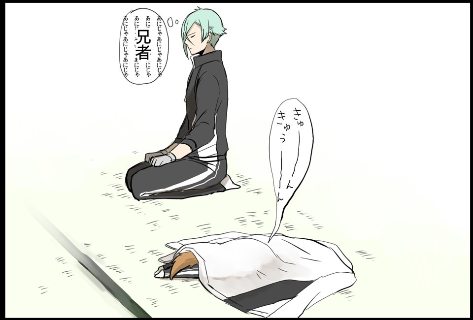 寝ている間に日光が当たって暑そうな膝丸と、弟が溶けるのを見守る犬兄者