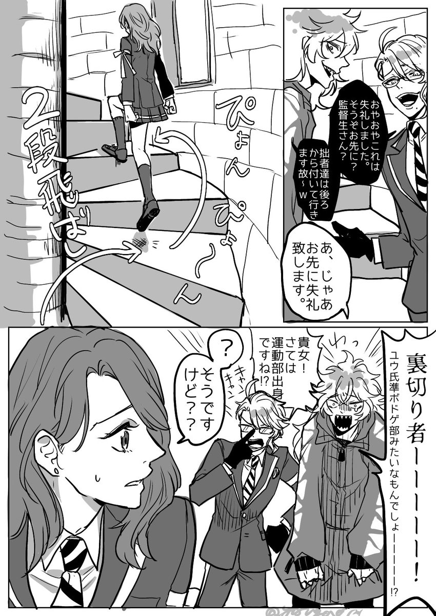 社会人レオ監🦁🌸 盛大に足元を踏み外しそうな監🌸を間一髪で掴まえるレオナさん🦁