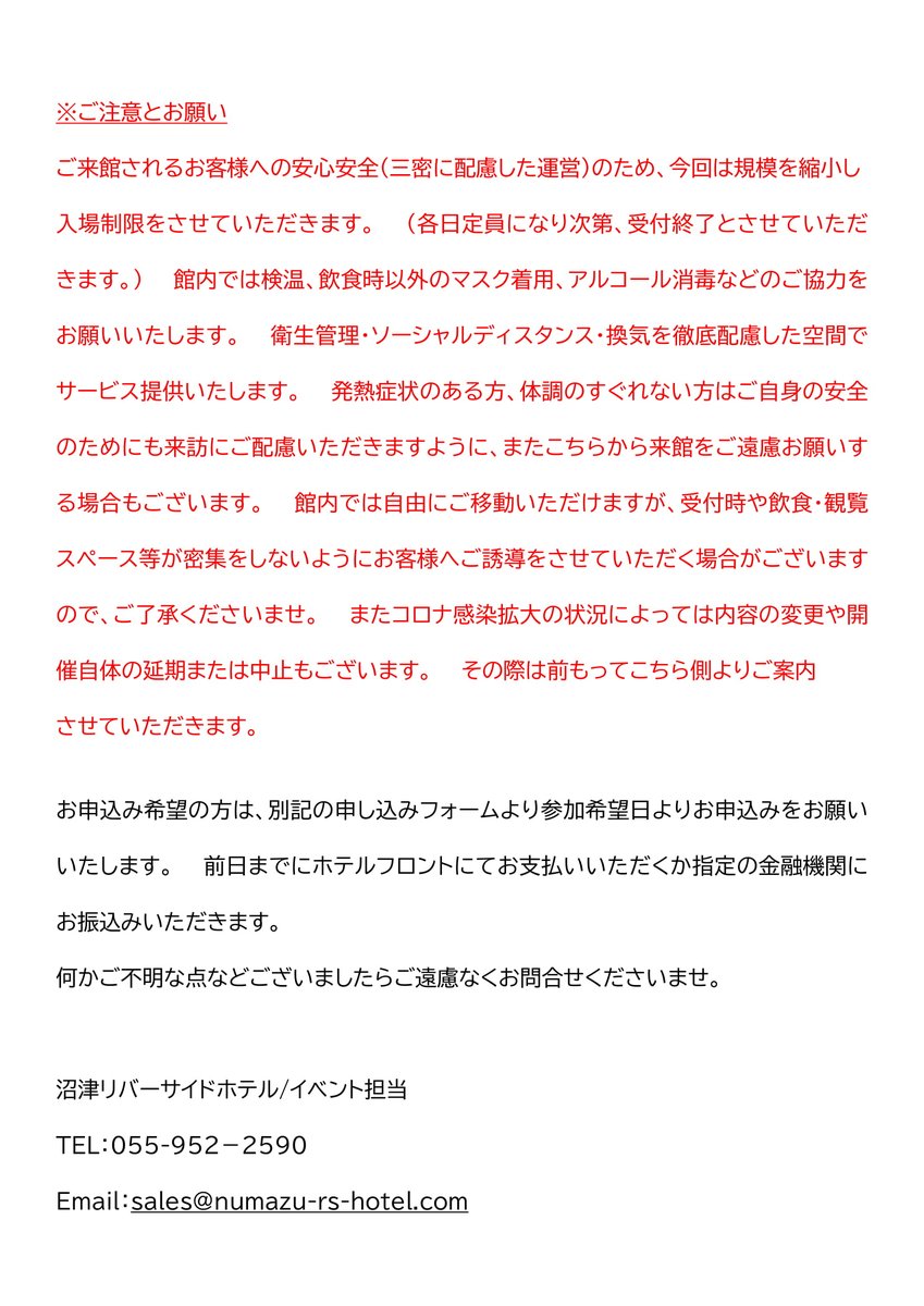 【ご案内】ライブ会場の最寄り駅・掛川駅前にある掛川グランドホテルでライブ前夜の4月30日と5月1日に『地元愛!沼津フェア』を開催をいたします。ライブ前夜に地元愛を注入すべく沼津リバーサイド監修の楽しい夕食をご用意。コロナ対策をしっかりして予約制にて受付。詳細は近日中に発表いたします。 twitter.com/rs_hotel/statu…