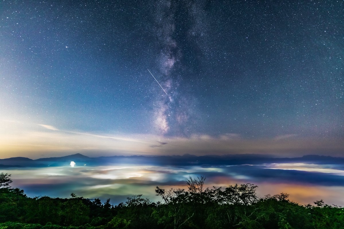 天の川、雲海に降り注ぐ。