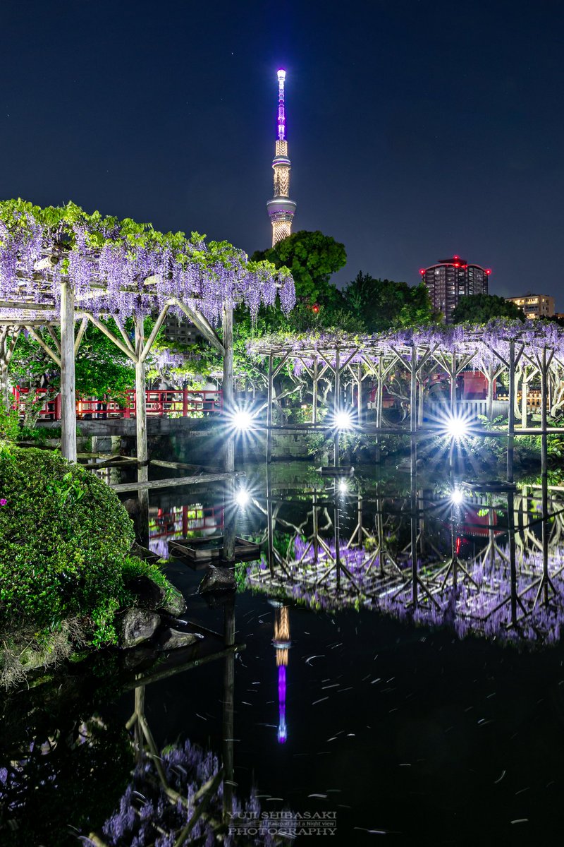 藤色のスカイツリーと藤の共演。