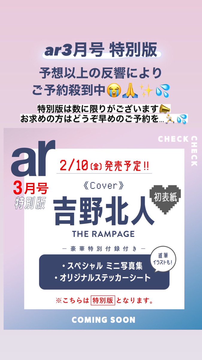 吉野北人さん初表紙のar3月号特別版、ご予約殺到中ですッ❤️🔥