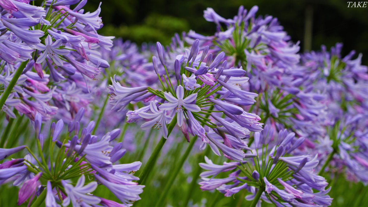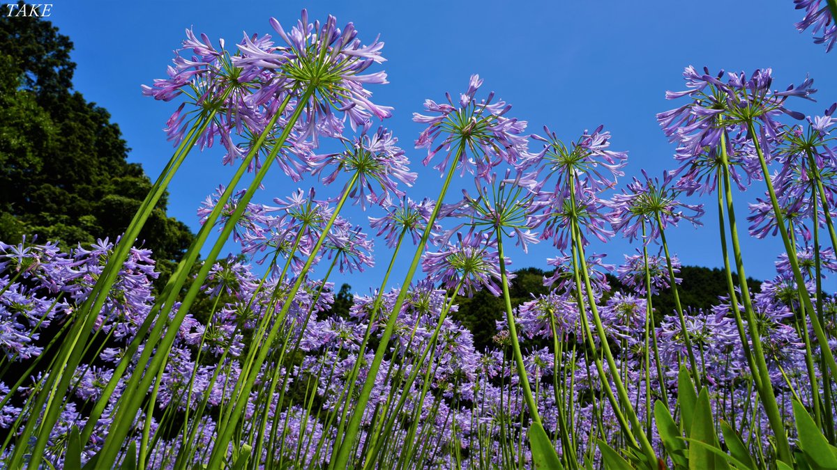 淡い紫色のアガパンサスが 梅雨晴れの空に星形の花弁を広げ 畑一面に咲き誇っていました🌺