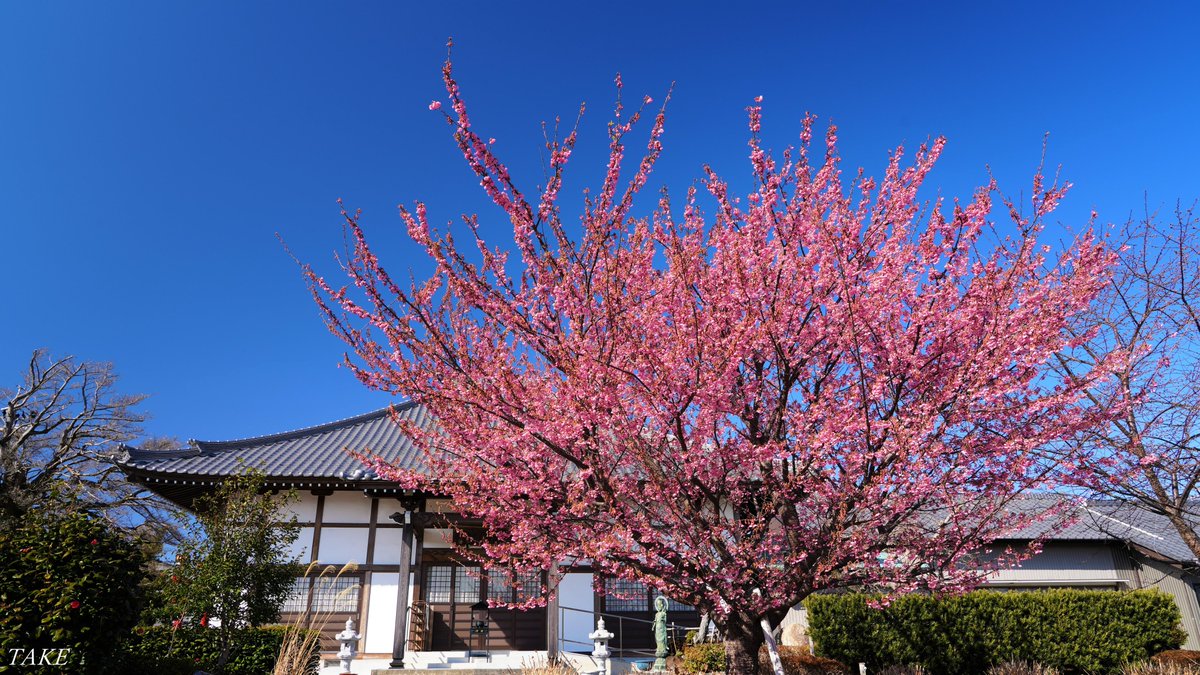 暖かい日差しの昼下がり お寺の境内に咲く土肥桜が 満開の見頃を迎えていました 穏やかな風に揺れる花びらが とても美しく華やかでした🌸
