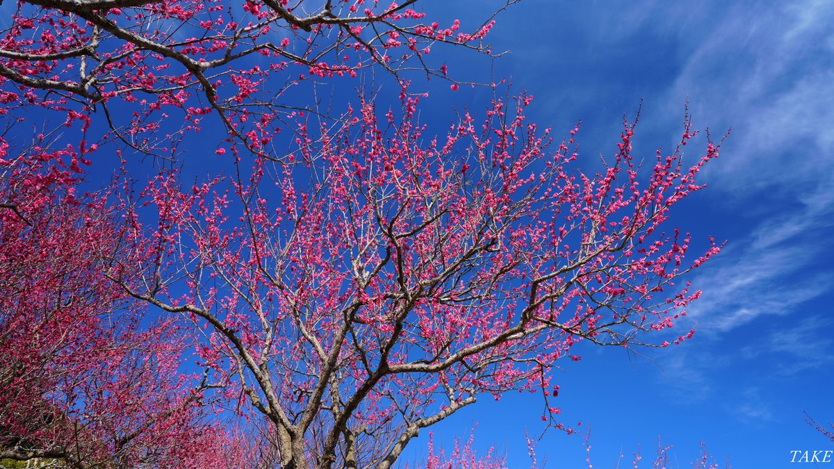 晴天の青空に咲き誇り 深紅に色づいた紅梅が 芳醇な香りを漂わせ 美しい色合いを魅せていました🌺