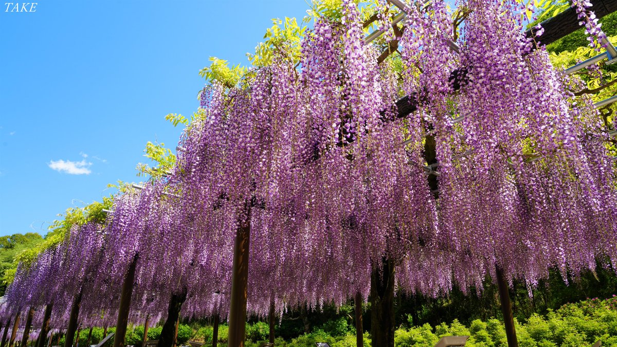 静岡県藤枝市の蓮華寺池公園へ 藤の花を見に行って来ました 園路沿いやフジの庭園には 長藤が甘い香りを漂わせ 紫色の花房がとても綺麗でした🌺🎏