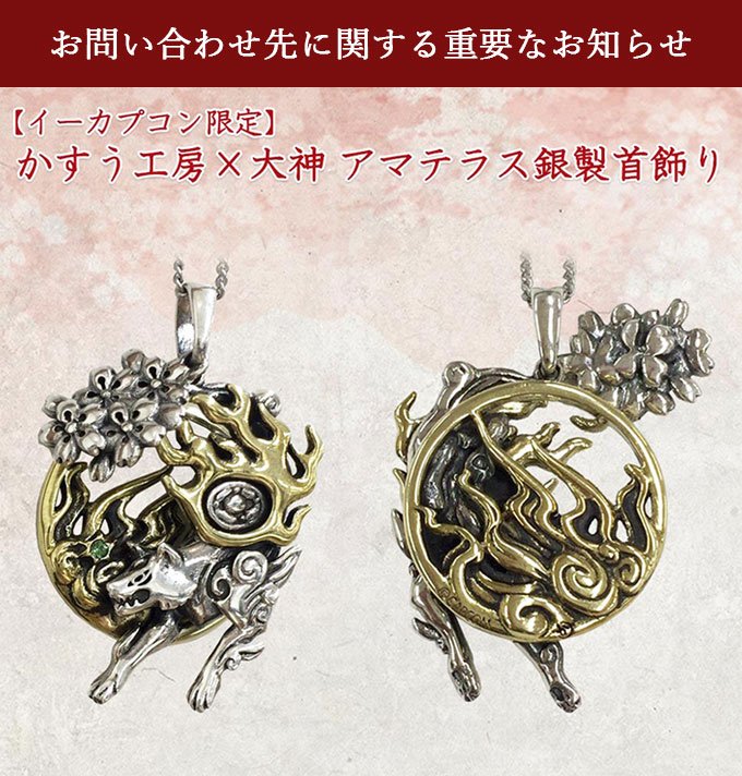 NS『大神 絶景版』イーカプコン限定商品「かすう工房×大神 アマテラス銀製首飾り」はイーカプコン限定販売商品のため、お問い合わせは必ずイーカプコンへお願い致します。「かすう工房」様へのお問い合わせはご遠慮ください。