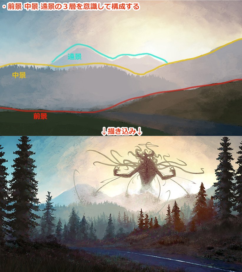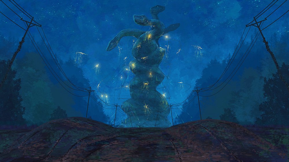 まずラフで場所背景を制作してから「そこにどんな生物がいるか」を考えています。その生物が存在している環境の表現も含めて一枚絵になるように制作してます