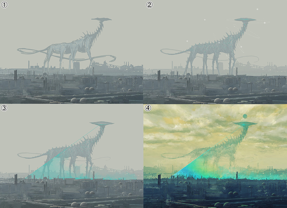 モチーフは描きながら進化変態させるし、