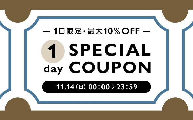 明日11月14日(日)、最大10%OFFになる1日限定クーポンをプレゼント!🎁