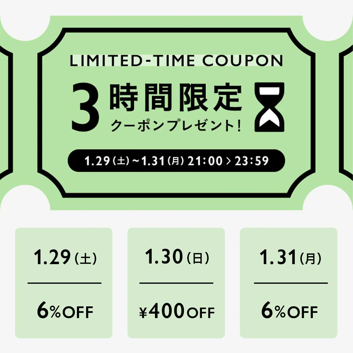 本日より3日間、日替わりで3時間限定クーポンをプレゼント🎁