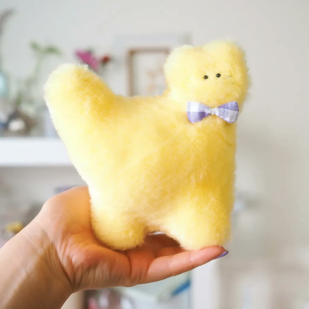 ふわふわで元気いっぱいな、きいろのねこのぬいぐるみ。