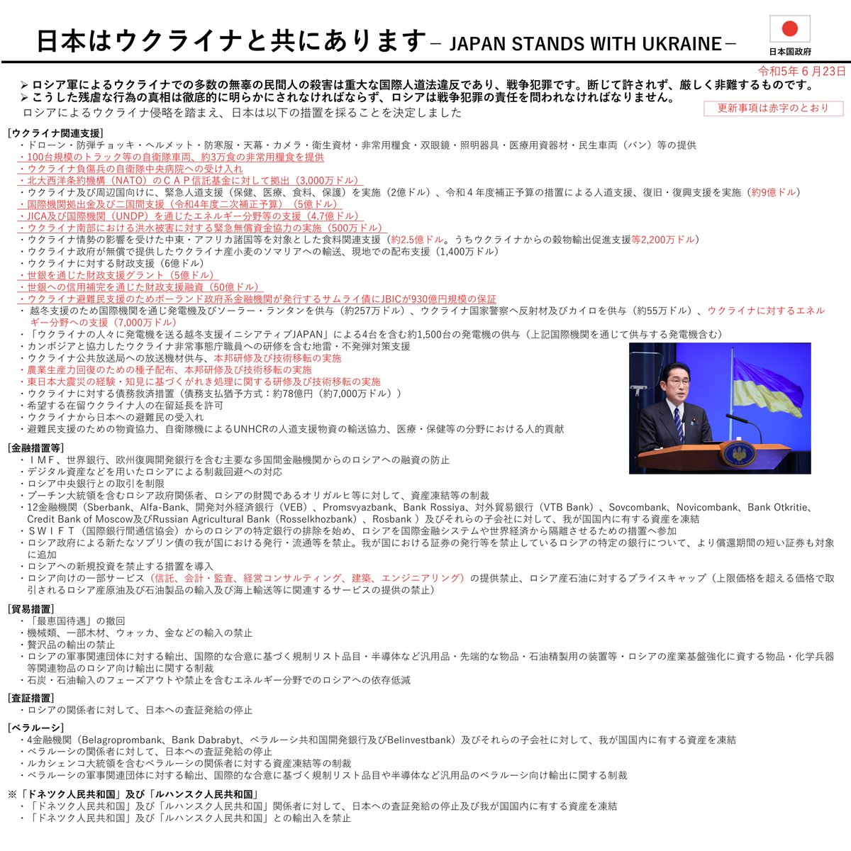 ロシアによるウクライナ侵略を踏まえた日本国政府の対応について(6月23日現在)
