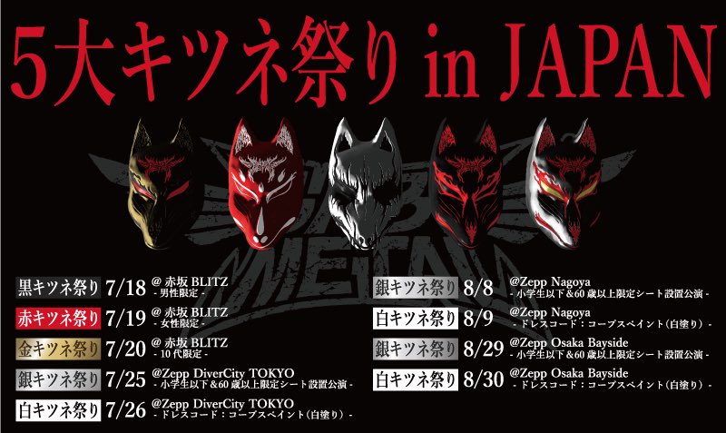 #BABYMETAL #5大キツネ祭り in JAPAN!!男性限定-METAL HEADSだけのカーニバル「黒キツネ祭り」は7/18(火)赤坂BLITZで開催!!現在THE ONE先行受付中DEATH!! babymetal.jp/news/detail.ph…