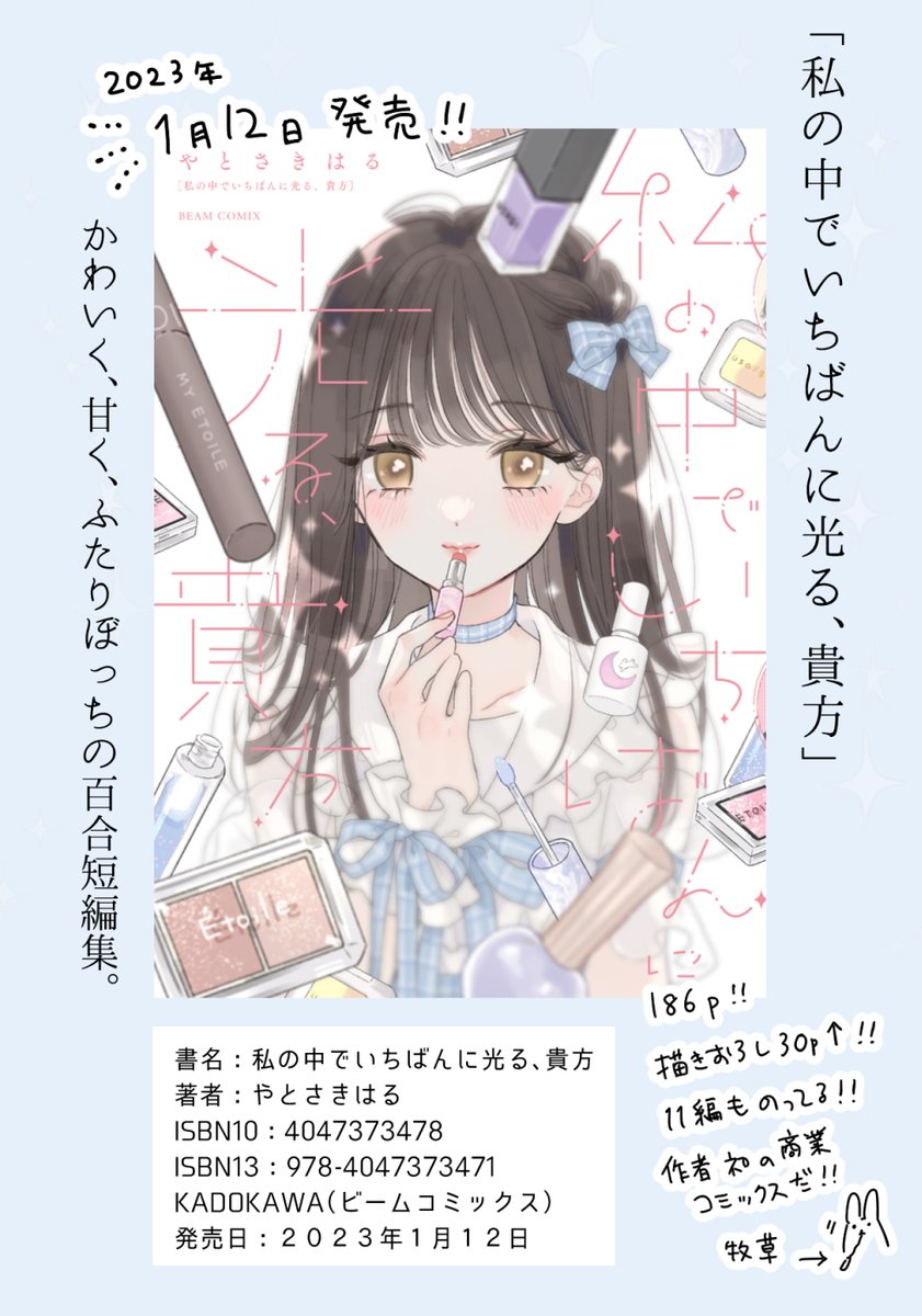 KADOKAWAビームコミックスより短編集「私の中でいちばんに光る、貴方」が来年1/12に発売します!よろしくお願いいたします。各書店さんで予約受付中です✨