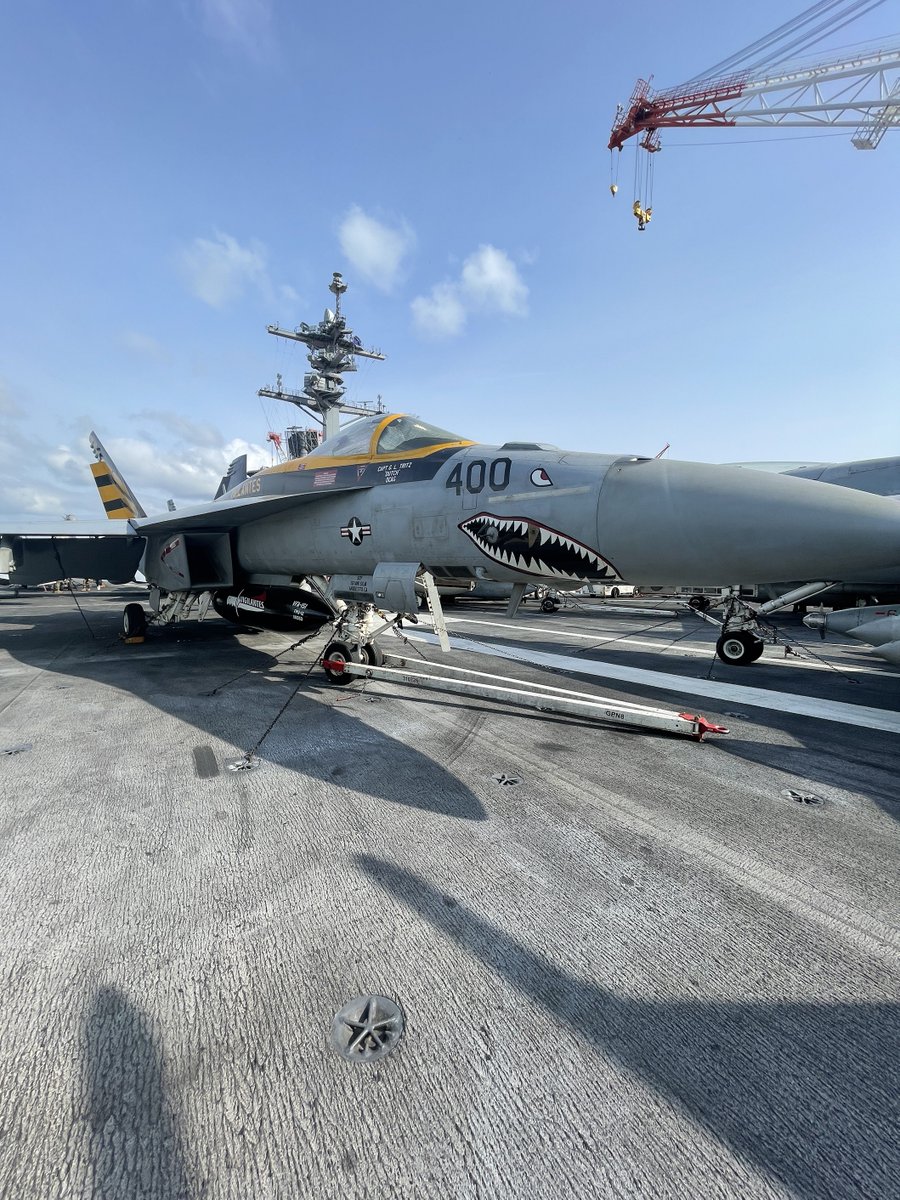 なぜ会いたかったのか?それは先日、お題として写真をご紹介して、皆さんにいろいろなものをくわえさせて頂いた、第151戦闘攻撃飛行隊ヴィジランティス所属のあのF/A-18Eスーパーホーネットだったからです。せっかく横須賀にきていたのに、本物に会いたかった・・・残念twitter.com/CNFJ/status/15…