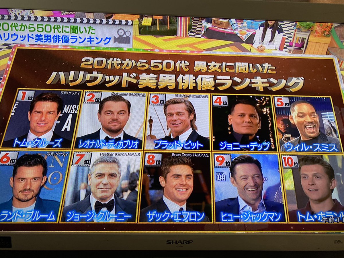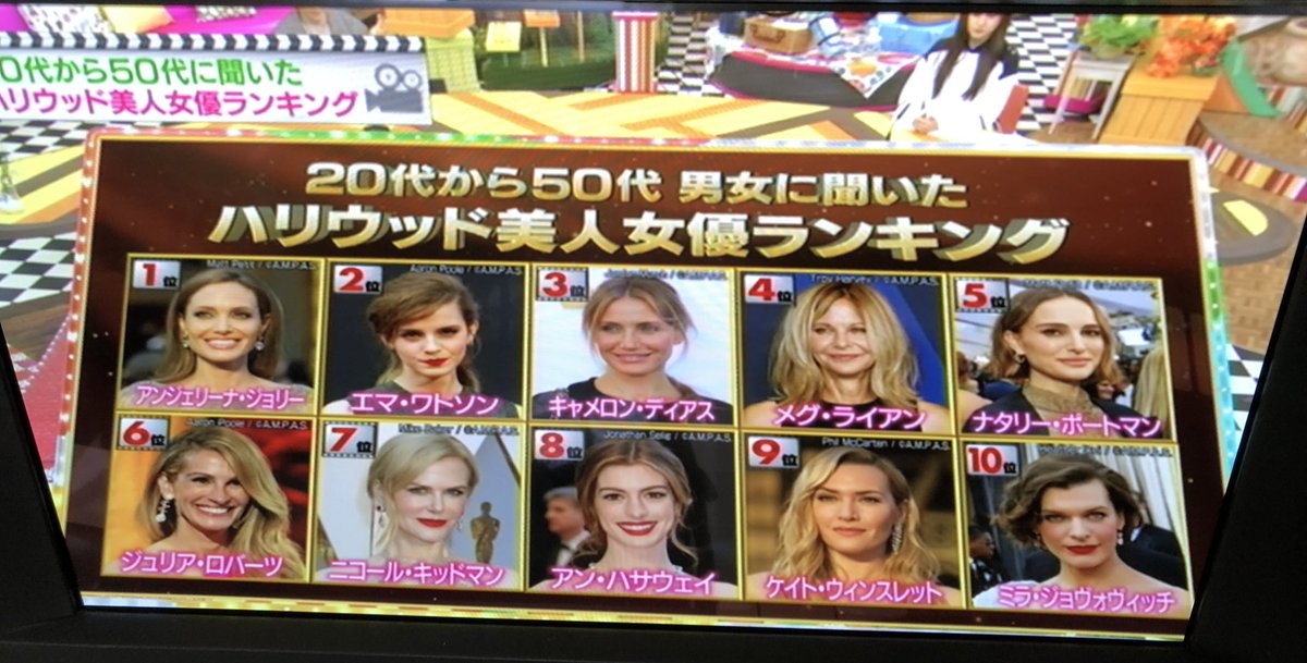 王様のブランチでやってたハリウッド美男美女ランキング、いつの時代だよってラインナップ。