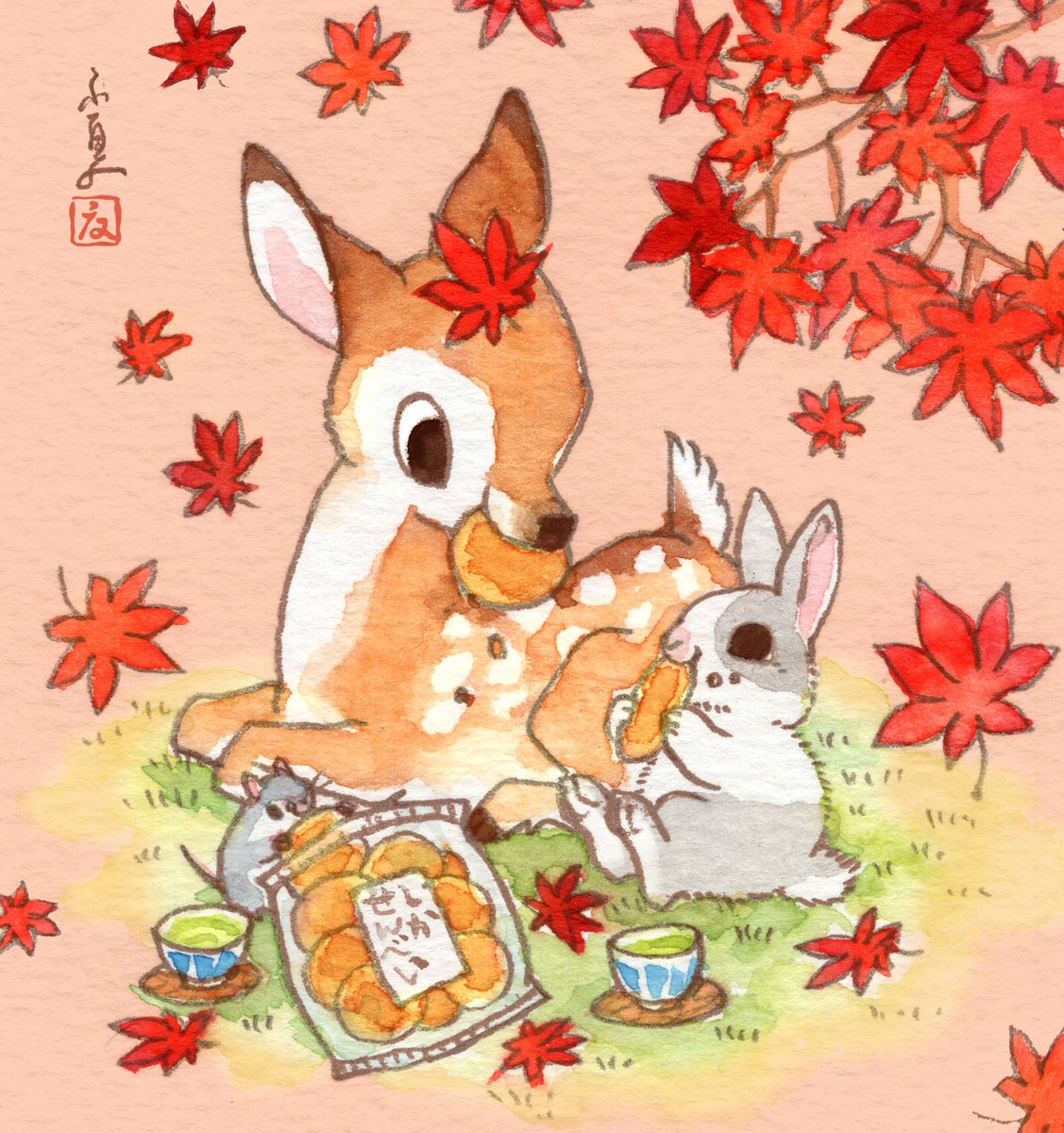 紅葉と鹿せんべい🍁