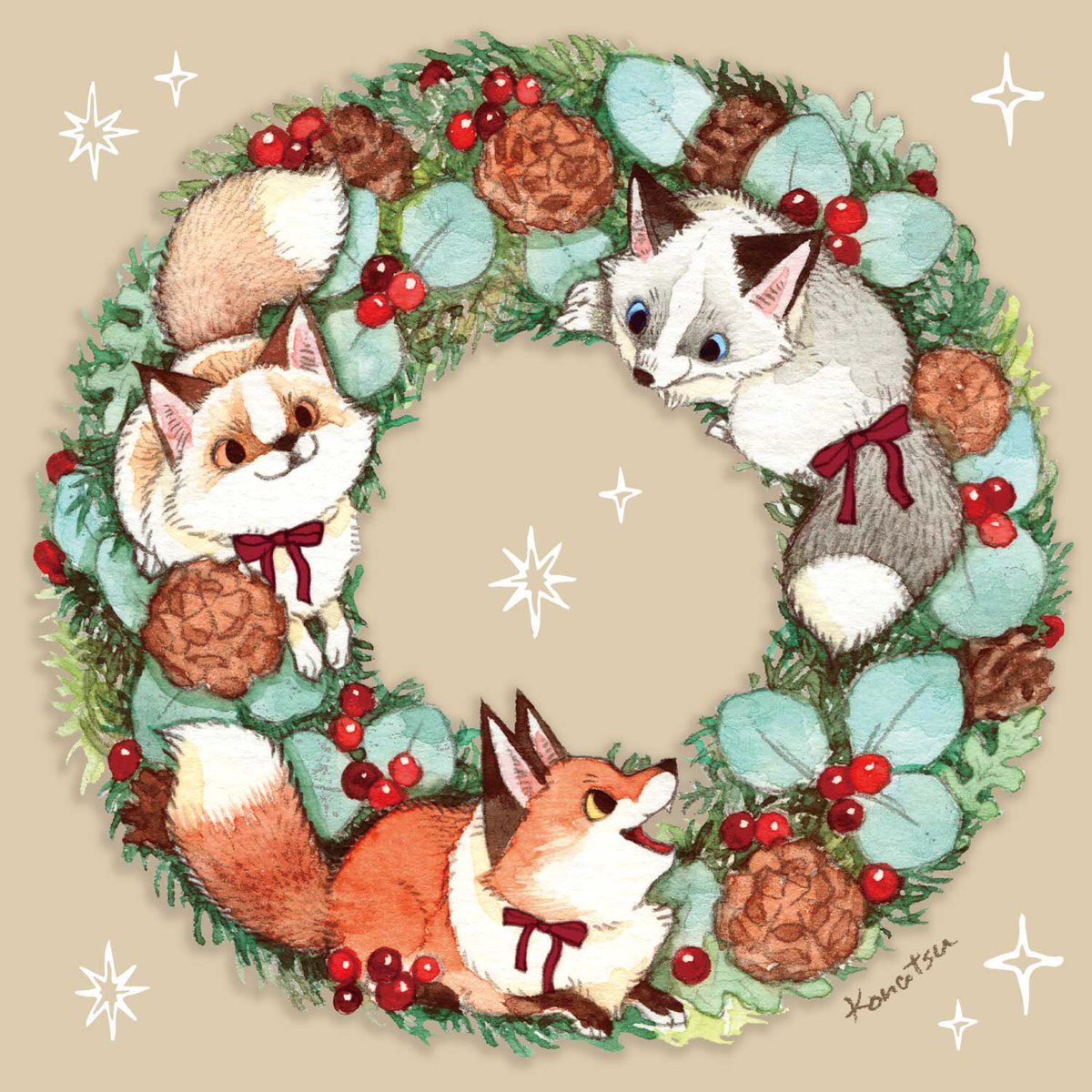 キツネのクリスマスリース