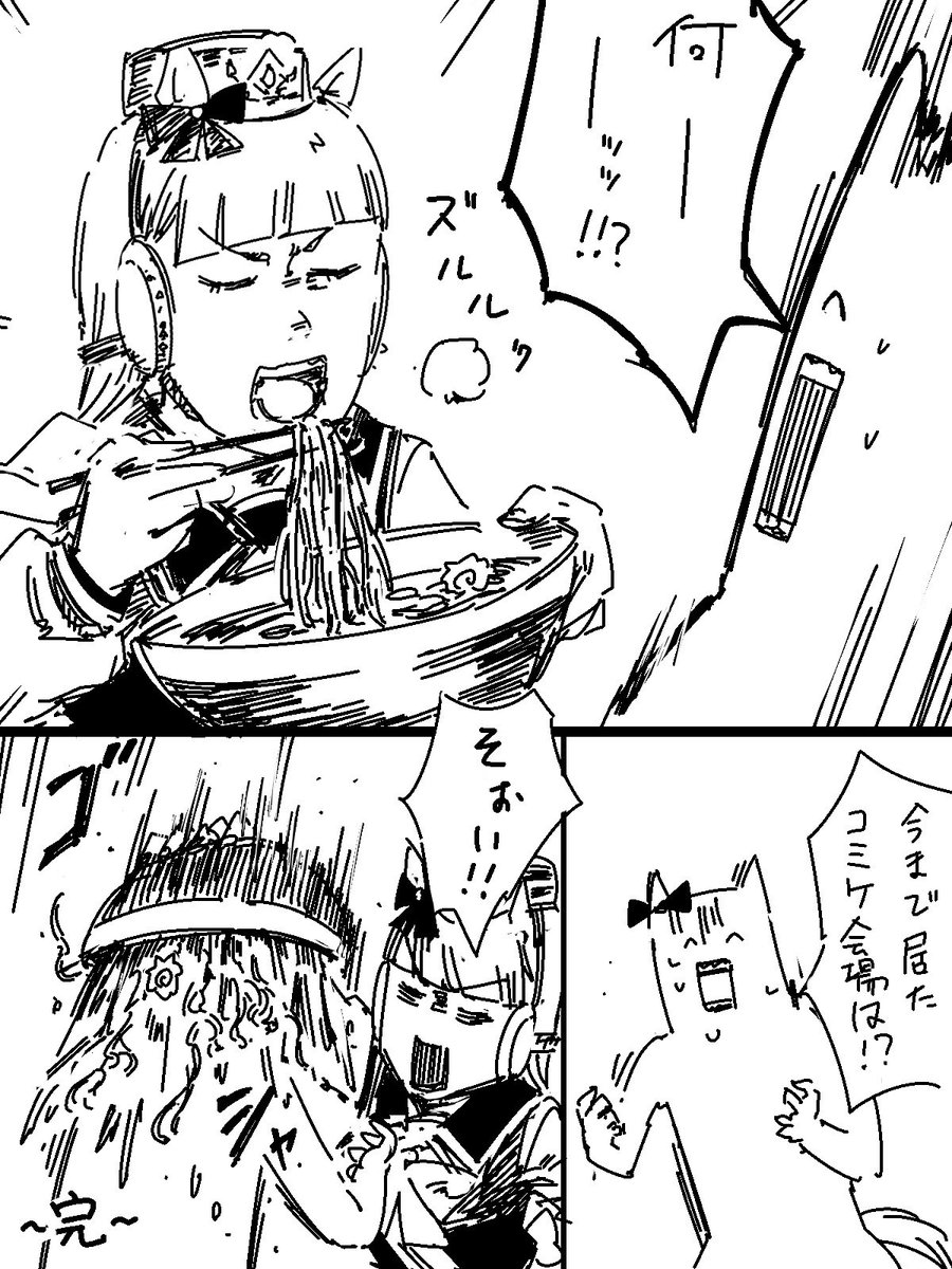 コミケ行ってないので、妄想と幻覚のコミケレポ漫画です。ゴルシに頭からラーメンをぶちまけられたのは現実です。