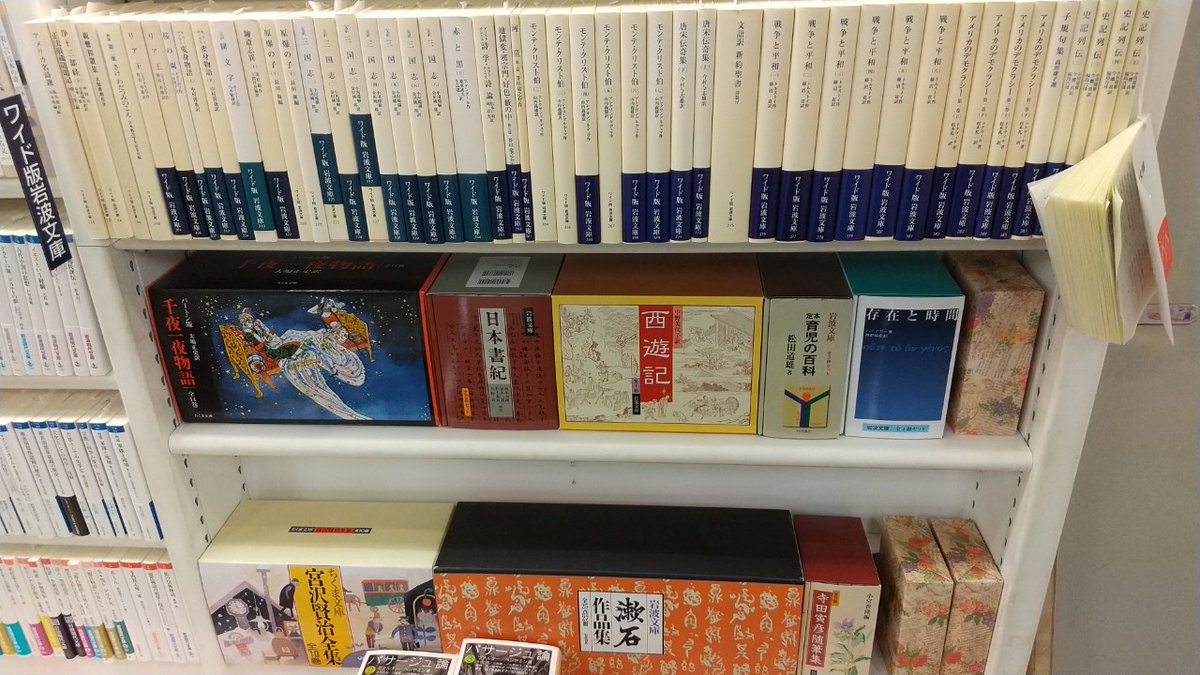 【5階】古今東西の典籍を手軽に読める、読書人の皆様に熱く支持される岩波文庫x.gd/UMy0D 。青・黄・緑・白・赤の各帯色の品揃えを充実させ、皆様のご来店をお待ち申し上げております。岩波現代文庫やワイド版、箱入りセットもございます。年末の年始の読書にぜひ、ご利用下さいませ。