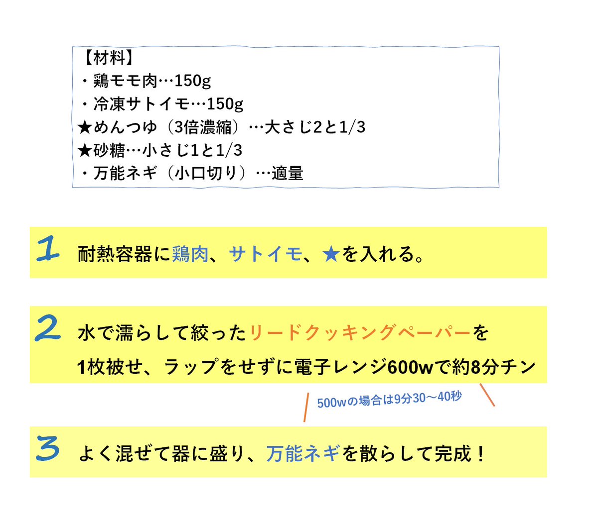 なんと材料は3つと調味料のみ…!レンジで超簡単、食べるのも作るのも秒殺です