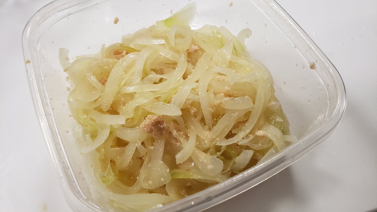 容器に新玉葱と明太子、調味料入れ、4分チンして混ぜるだけ!