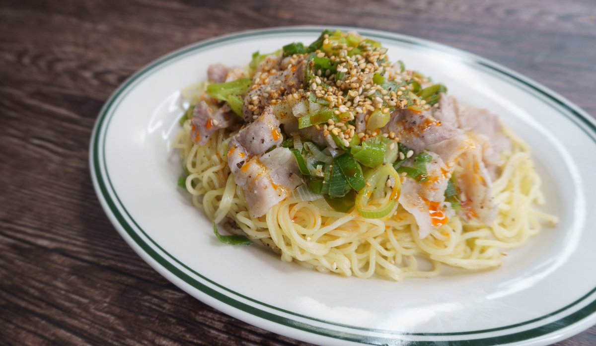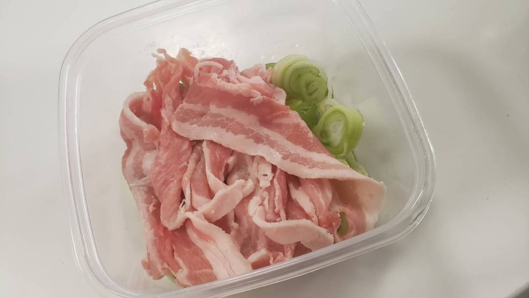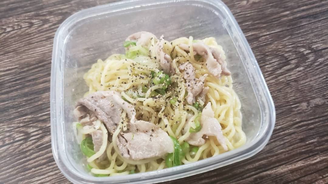 【レンジネギ塩豚カルビ焼きそば】