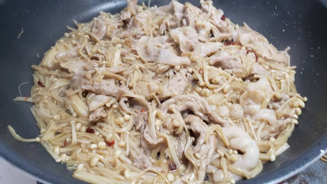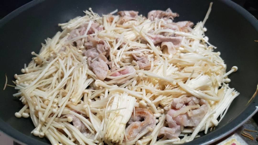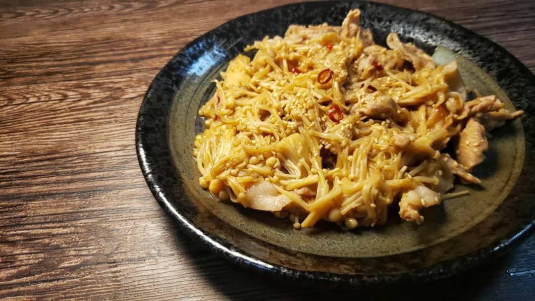 コリコリと食感のいいえのきと豚をあわせて最高にご飯に合うきんぴら風の味付けにしました!