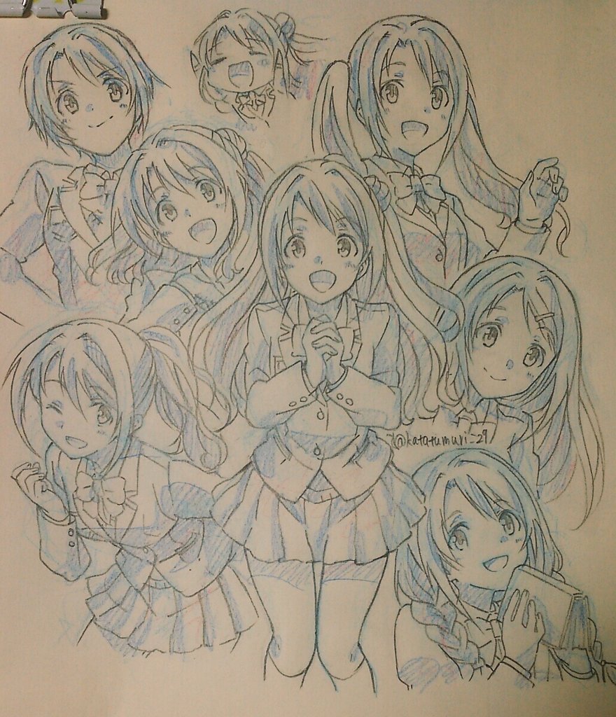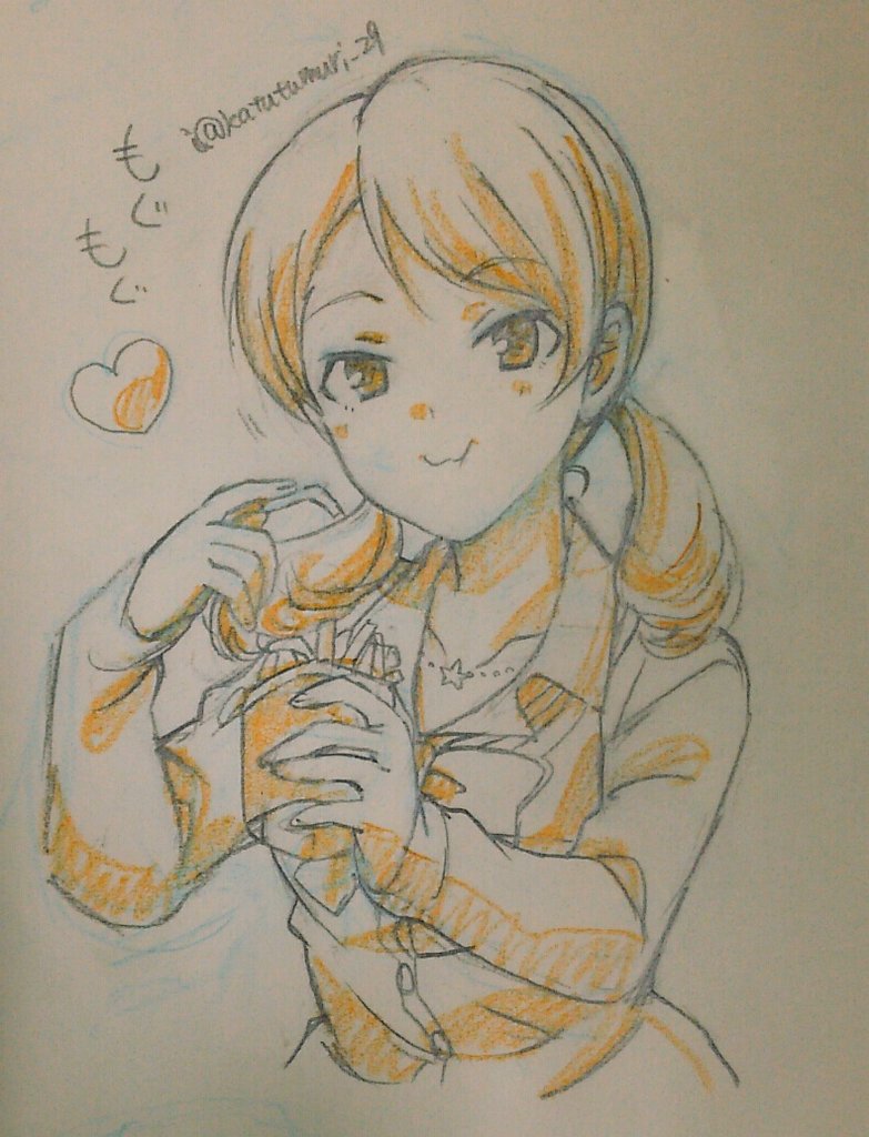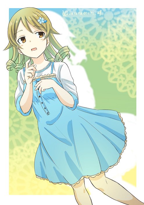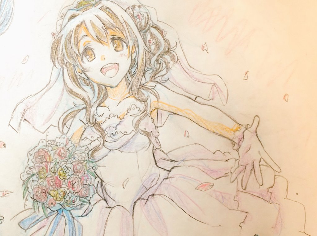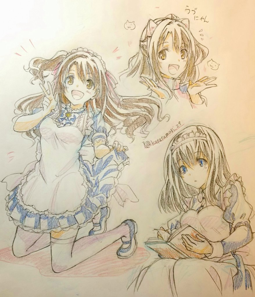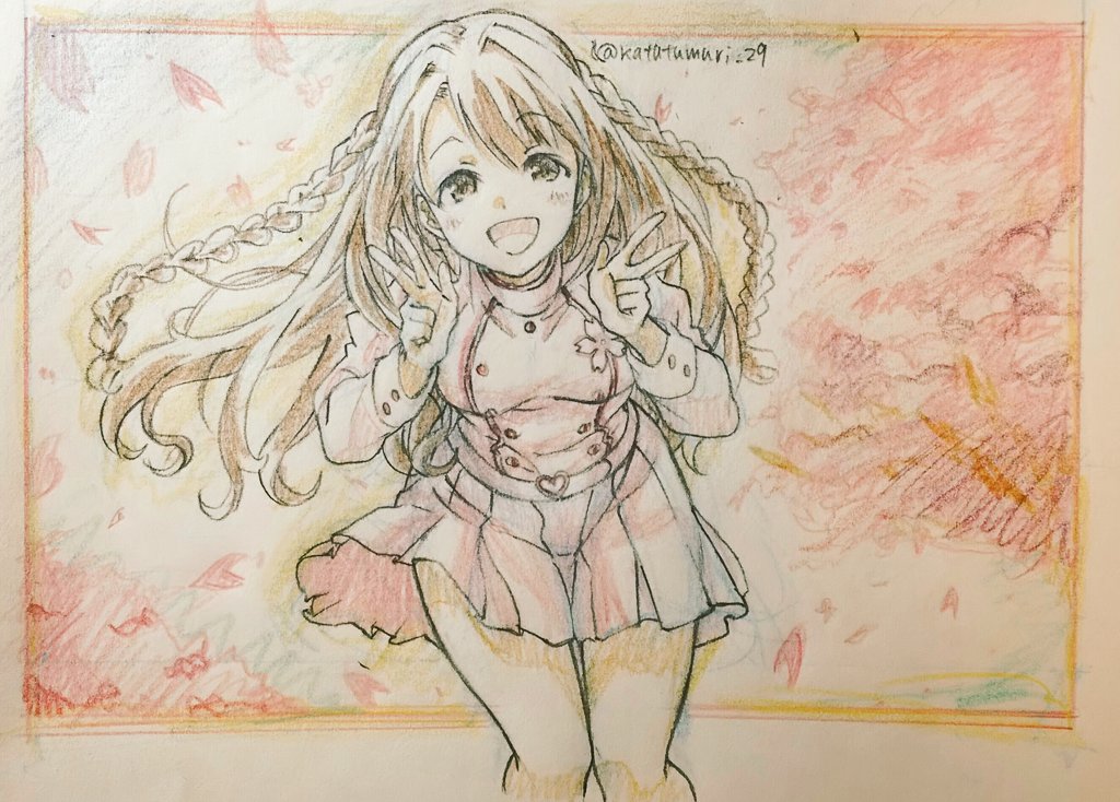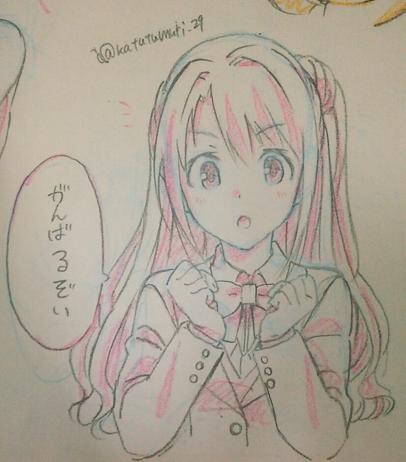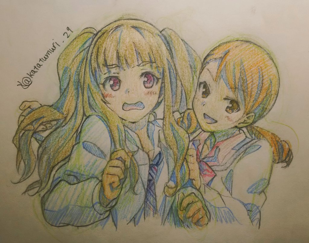 便乗してツインテール描いてみる…。なおかれで、おそろい。 奈緒ちゃんの髪もこもこしてて描くの楽しかった…。 ( *´﹀`* )