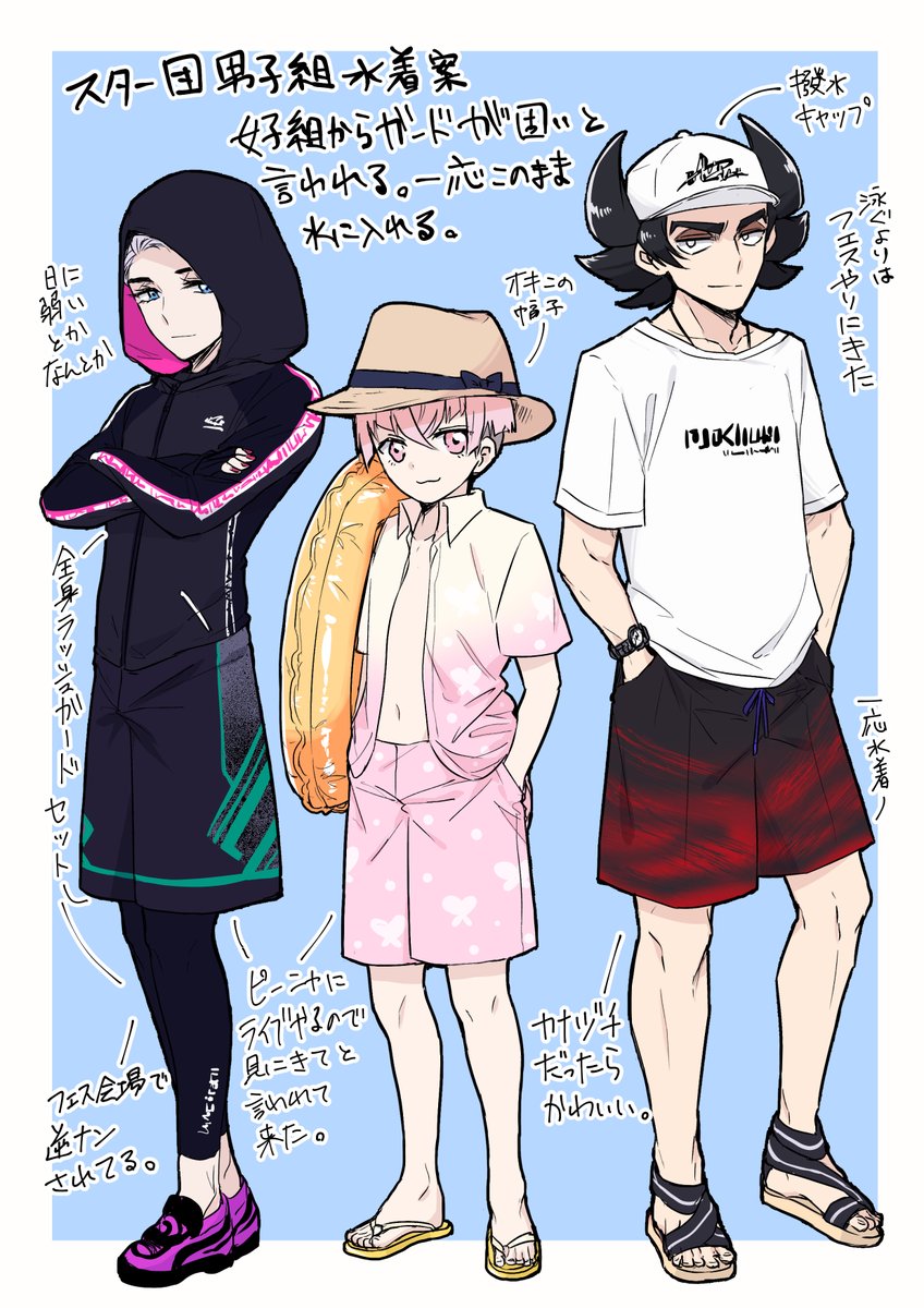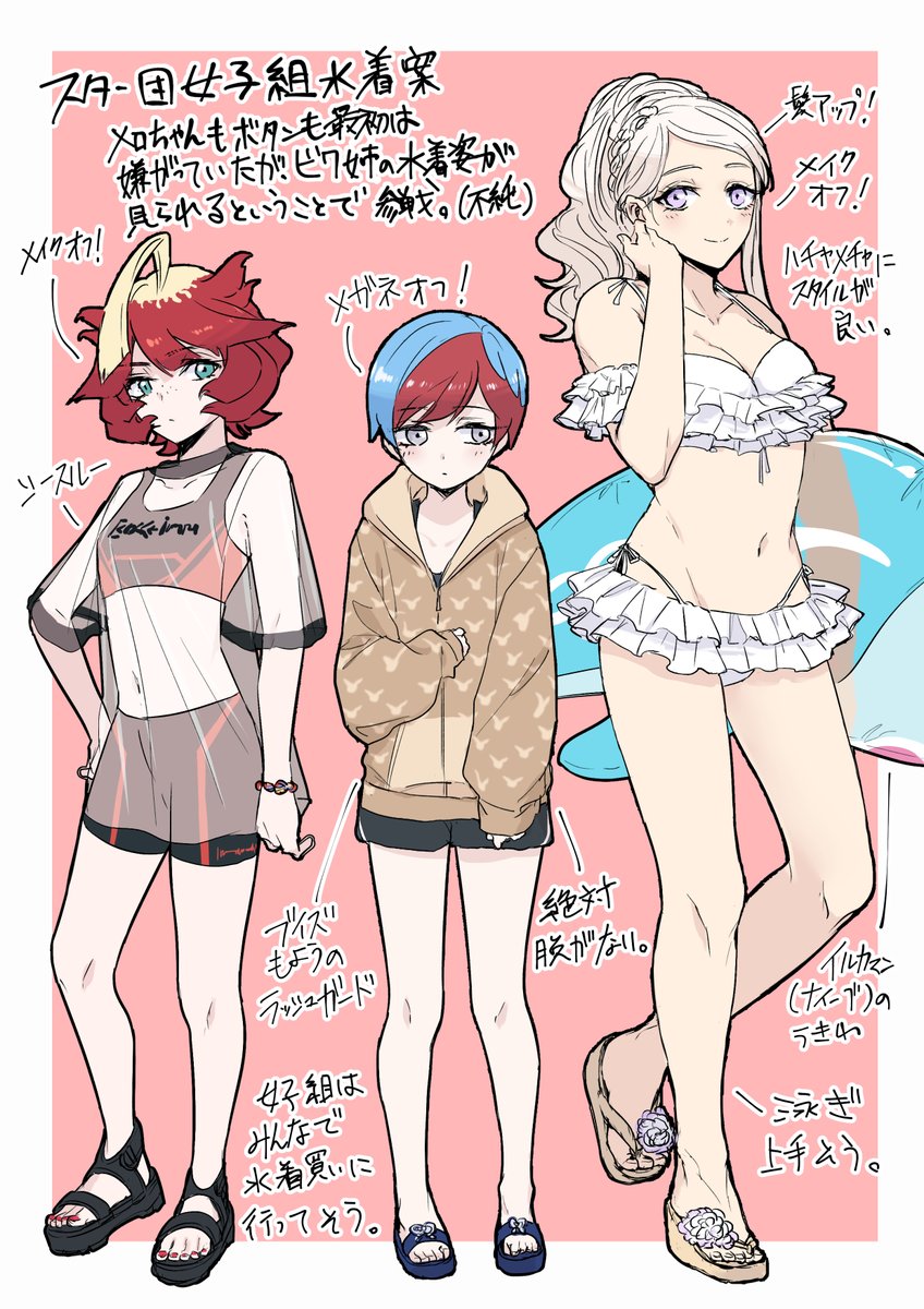 夏だし☆団の水着姿見てえな~~~という妄想です。 ※メイク全部落ちてます
