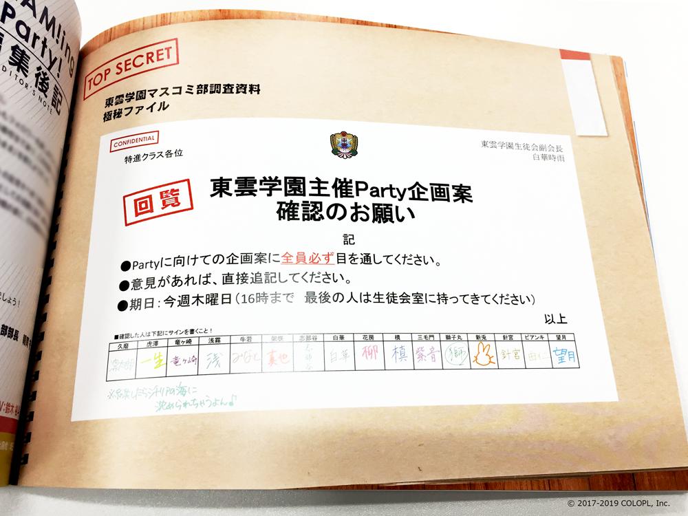 DREAM!ing Party! に臨む首席候補生たちへのインタビューはもちろん、東雲学園マスコミ部の極秘入手資料など、40ページのボリュームで送るスペシャルな1冊です(๑˃̵ᴗ˂̵)و