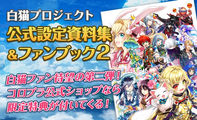 白猫公式設定資料集&ファンブック2 発売決定!今回もあります、公式ショップ特典♪ しかもアンケート結果で内容変わるんです!詳細は特設ページをチェキラ! =≡Σ((( つ•̀ω•́)つ shopping.geocities.jp/colopl-store/p…