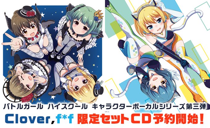 大変お待たせしました!バトルガールより、Clover,f*fのCD予約が開始です!今回の公式ショップ限定品はCDジャケットを使用した100cm四方のマルチクロス♪ 壁に飾るもよし、床に敷くもよし、使い方は先生次第ですよ(´∀`。) shopping.geocities.jp/colopl-store/c…