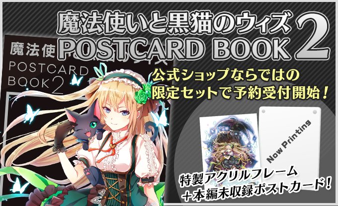 そして黒ウィズのポストカードブックも第二弾が登場!表紙は描き下ろしのリフィル!もちろんこちらの描き下ろし、ポストカードとして本編にも収録です♪ 同じく限定セットをご用意して、本日より予約受付開始してまーす!(^・∀・^) store.shopping.yahoo.co.jp/colopl-store/k…
